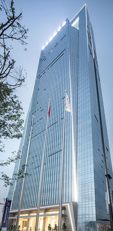 項目位于成都高新南區(qū),美麗的錦江河畔,兩棟塔樓分別作為新華文軒和新華發(fā)行集團的總部辦公樓。塔樓體量巨大,建筑高度42層達