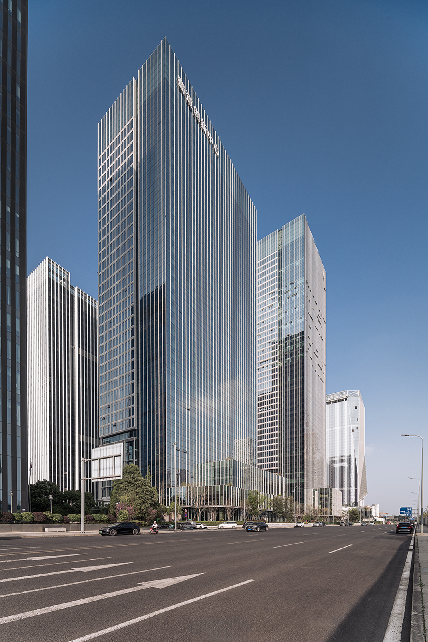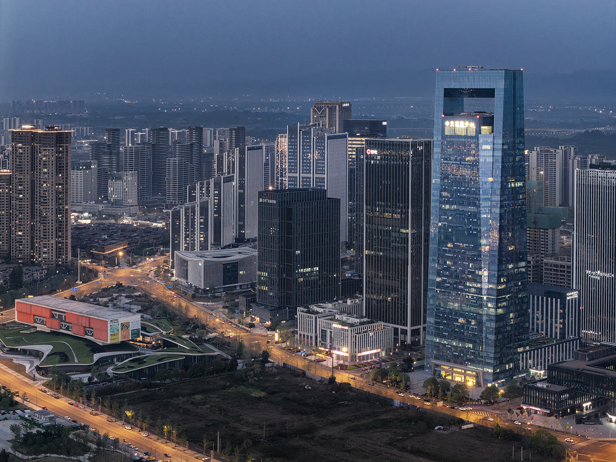 項(xiàng)目位于成都市天府新區(qū)中央商務(wù)區(qū),為該區(qū)域重大產(chǎn)業(yè)項(xiàng)目。用地位于中央生態(tài)帶和東西向軸線寧波路的交匯之處,地理位置極為重要。地面總建筑面積為21萬平方米,分為兩座35層和45層超高層塔樓,建筑高度分別為160米和220米。